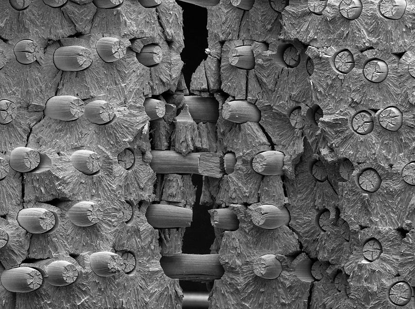 One key technology we have worked on is the production of "Tungsten-Tungsten" composites – with our collaborators at the Max Planck Institute for Plasma Physics and Forschungszentrum Jülich GmbH. The image on the right shows tunsgten wires reinforcing a CVD deposited tungsten matrix.